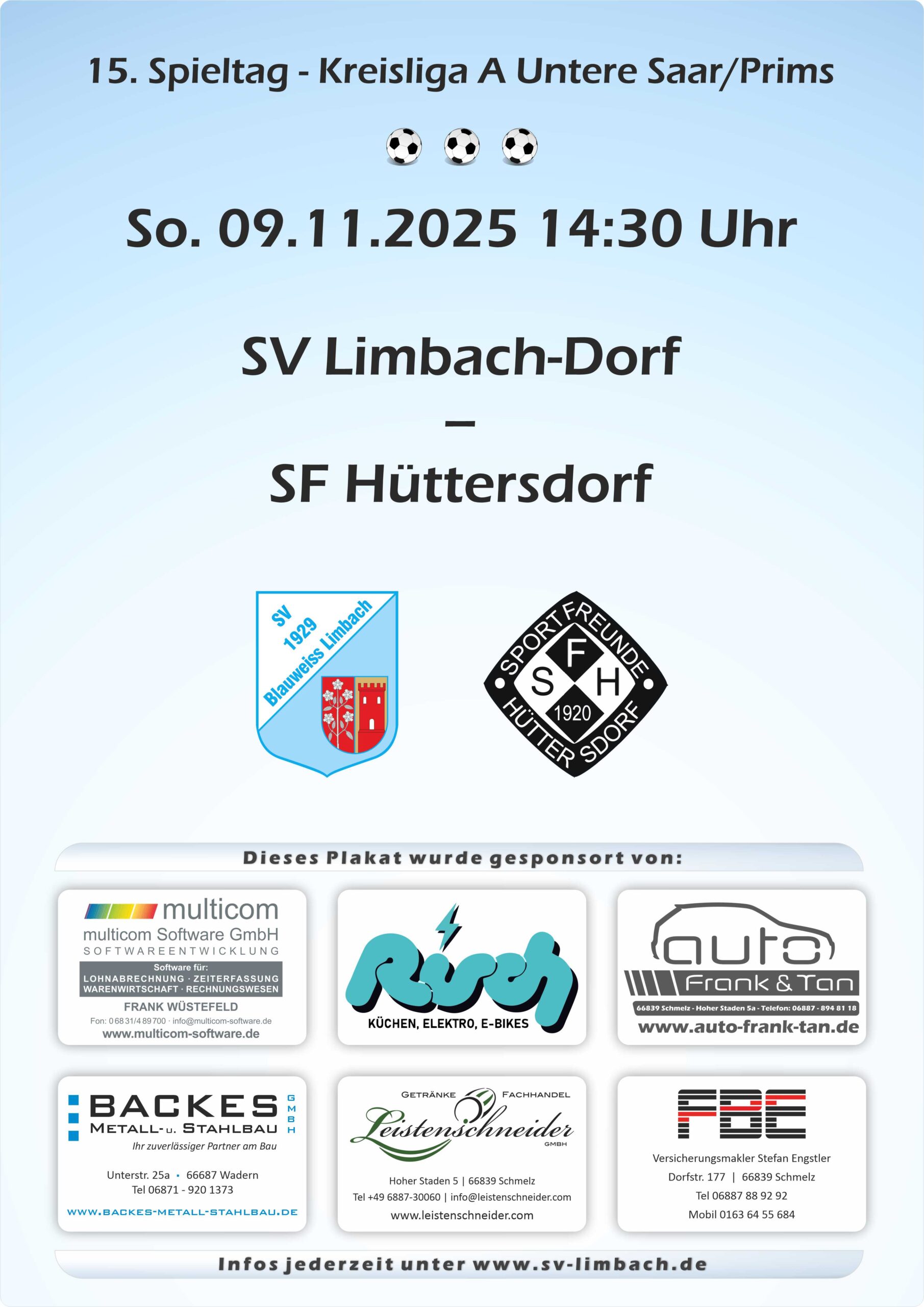 So. 09.11.2025 14:30 Uhr, SV Limbach-Dorf – SF Hüttersdorf – 15. Spieltag