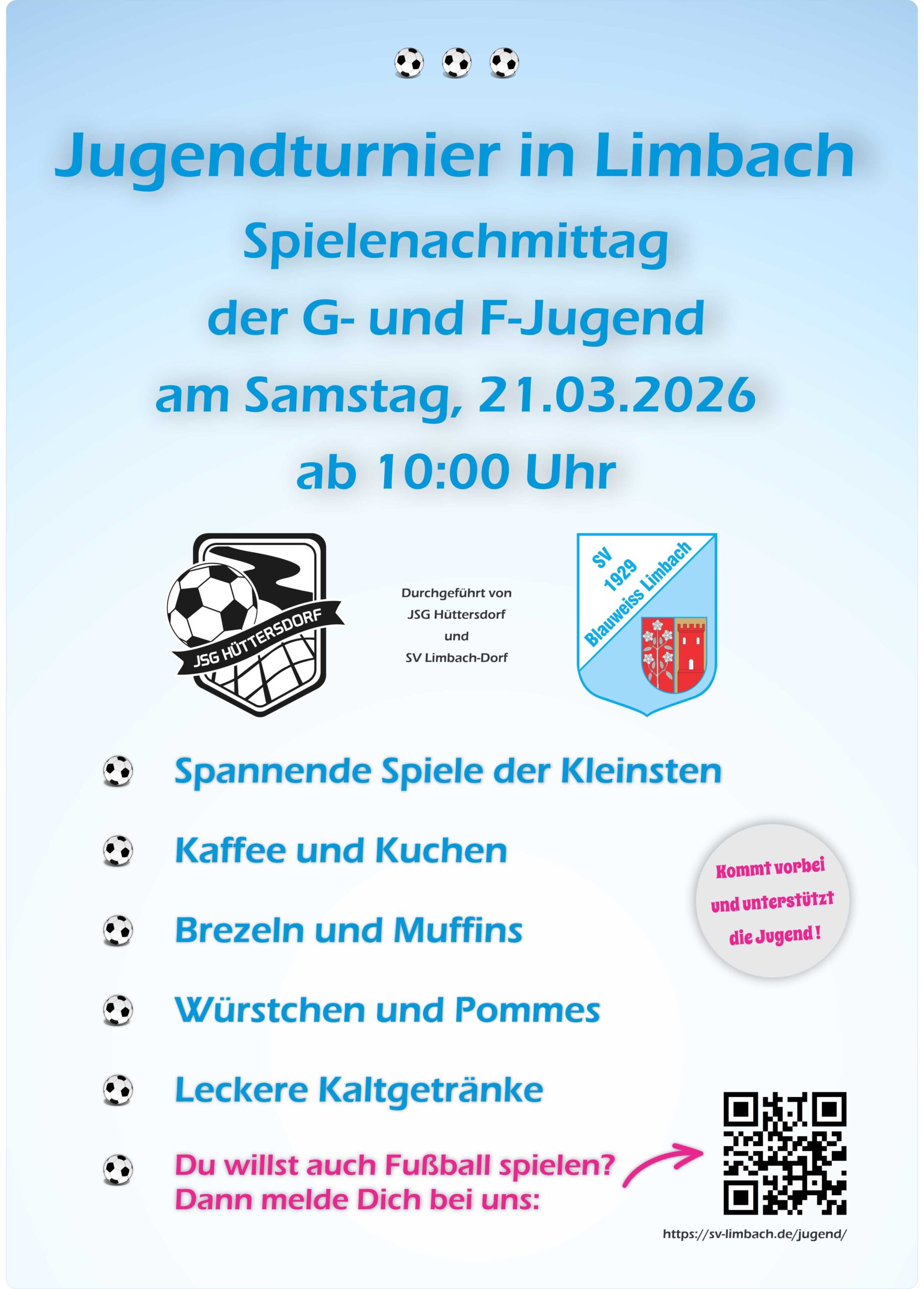 Morgen ist es so weit! Die G- und F-Jugend lädt zum großen Spielenachmittag ein. Kommt vorbei, feuert unseren Nachwuchs an und genießt einen tollen Tag auf dem Sportplatz.