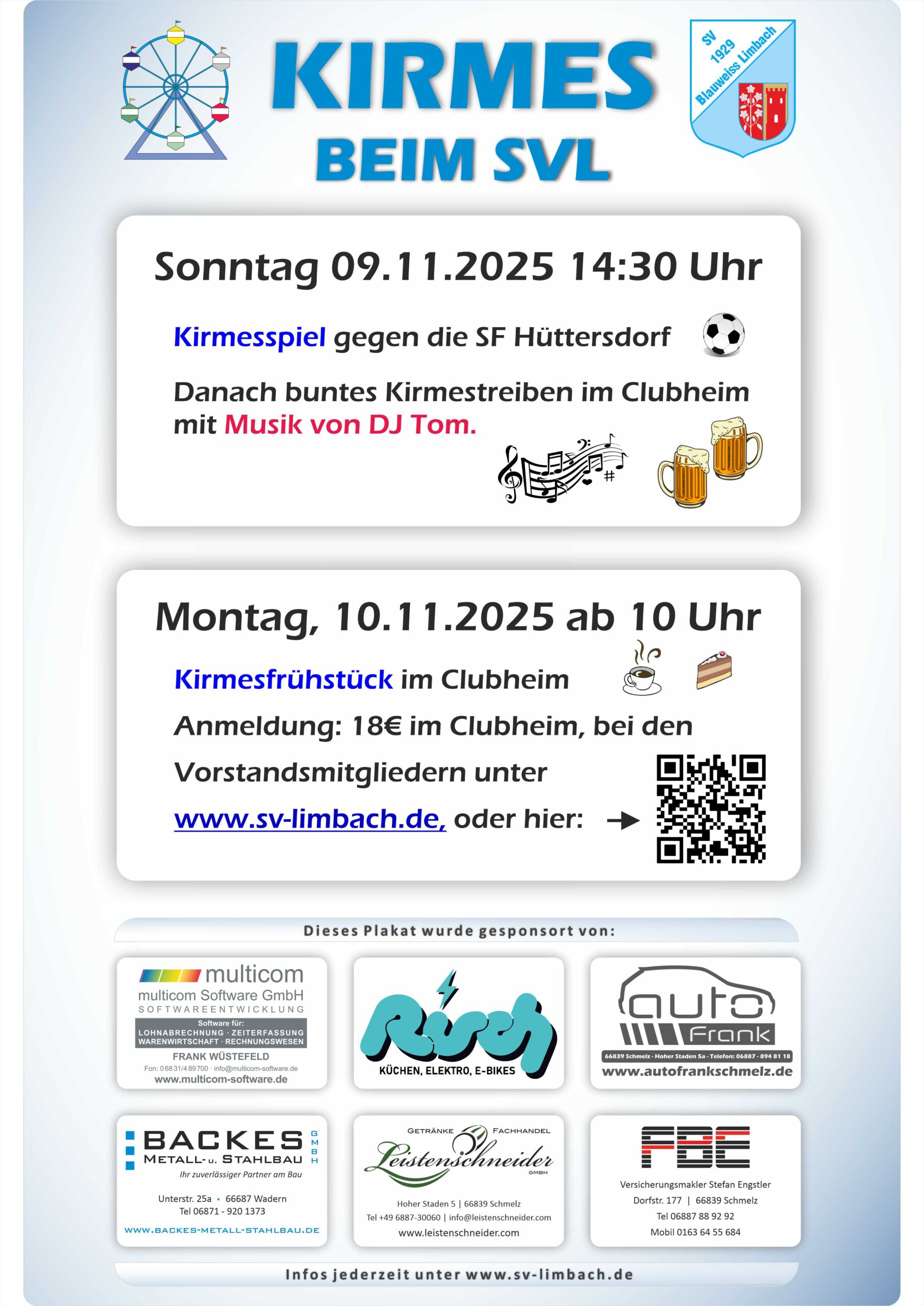 Das sollte dann ebenfalls bis zum 05.11.2025 erfolgen. Wir bestätigen die Anmeldung mit einer eMail bzw. einer Handynachricht.Solltet Ihr wider Erwarten nichts bekommen dann sendet uns eine eMail an info ätt sv-limbach.de